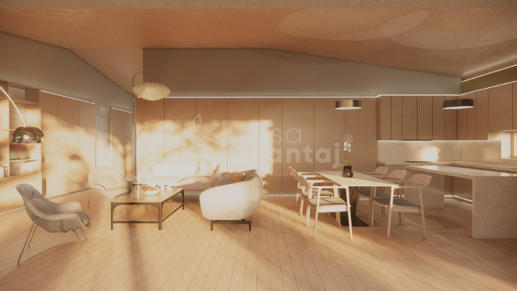 Interioarele sunt concepute pentru a reflecta esența vieții moderne, cu spații deschise, fluide, care promovează conectivitatea și interacțiunea. Livingul spațios se deschide către o bucătărie de tip open-concept și o zonă de dining, creând mediul perfect pentru momente memorabile alături de familie și prieteni. Materialele de înaltă calitate și finisajele elegante subliniază angajamentul nostru pentru confort și stil.